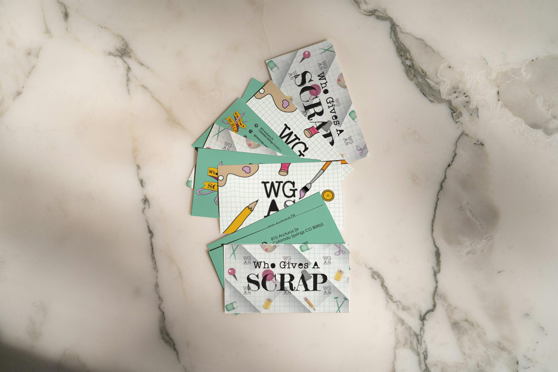 This is a rebrand concept for Who Gives A SCRAP - a donation-based scrap store that offers arts & crafts classes, studio space for local artists, and volunteer opportunities. Because they rely on donations, they provide environmentally friendly craft solutions.